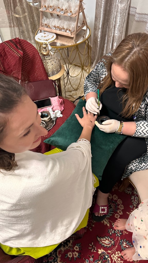 Übrigens diente der Abend dazu, dass die Braut Johanna traditionelles Henna bekam. Auch alle anderen Frauen durften sich ein kleines Henna-Muster abholen.